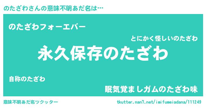 | 男性向けラノベタイトル風あだ名 | 『のたざわという概念が存在しない退屈な世界 』 |
