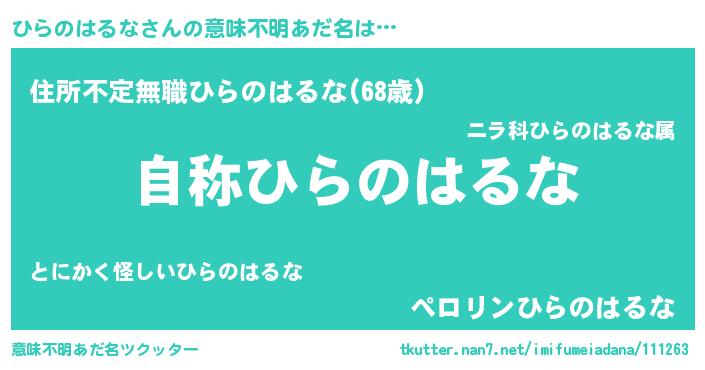 | 胡散臭い通販商品みたいなあだ名 | 『テレビで話題の高麗人参…その名も「ひらのはるな」』 |