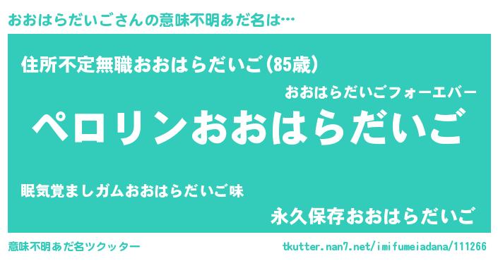 | 胡散臭い通販商品みたいなあだ名 | 『億万長者になれる霊験あらたかなお札…その名も「おおはらだいご」』 |