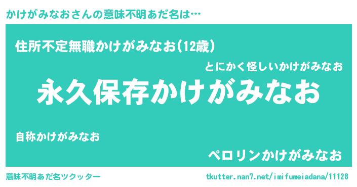 | 胡散臭い通販商品みたいなあだ名 | 『来世でも幸せになれる水素水…その名も「かけがみなお」』 |