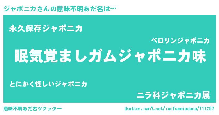 | 男性向けラノベタイトル風あだ名 | 『おまえをオタクにしてやるから、俺をジャポニカにしてくれ! 』 |