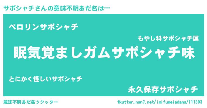 | ヘコむあだ名 | 『サボにゅー』『サボシャチ(小並感)』 |