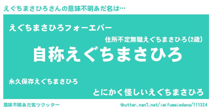 | 欧米人風あだ名 | 『えぐちまさひろ・ステッグマイヤー』 |