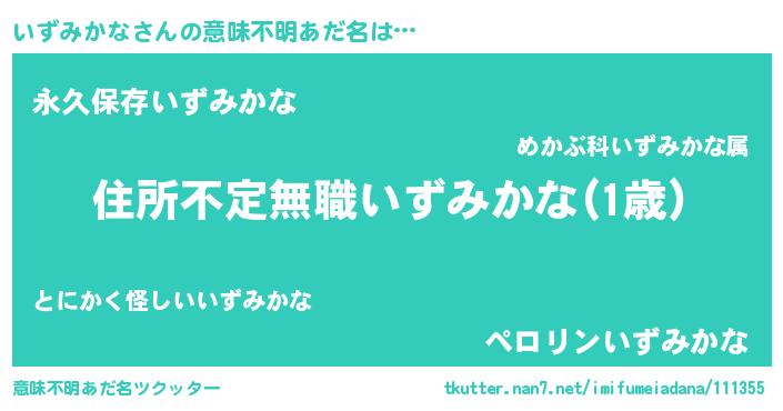 | ヘコむあだ名 | 『いずみかな(小並感)』『いずっふぃ~』 |