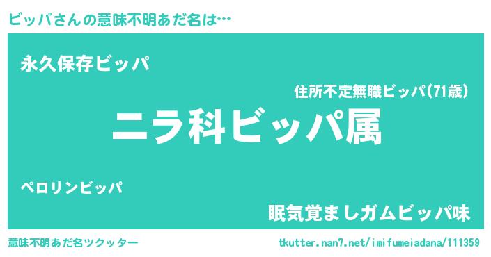 | 女子向けラノベタイトル風あだ名 | 『ビッパの玉の輿計画!』『ビッパ恋絵巻』 |