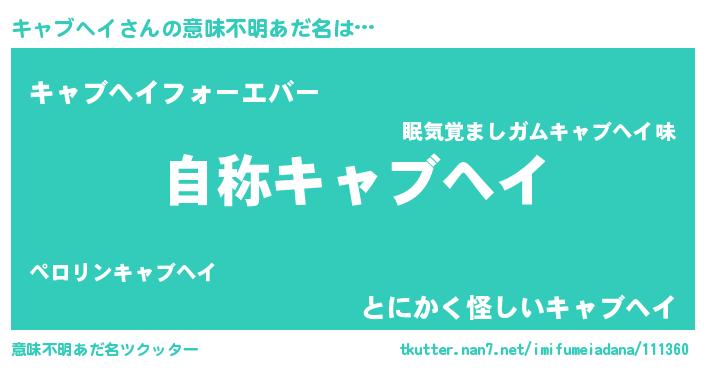 | 女子向けラノベタイトル風あだ名 | 『キャブヘイなんてお断りですっ。』 |