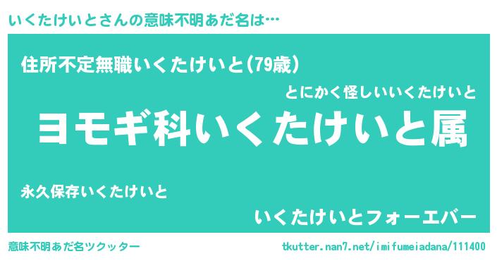 | 胡散臭い通販商品みたいなあだ名 | 『あなたにだけ特別に提供する100年もののヴィンテージワイン…その名も「いくたけいと」』 |