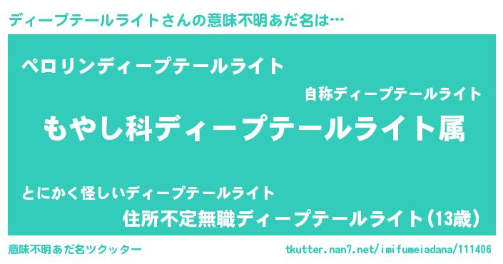 | 男性向けラノベタイトル風あだ名 | 『転生したらディープテールライトだった件』 |