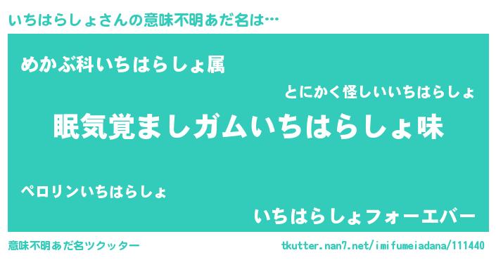 | 男性向けラノベタイトル風あだ名 | 『ノーゲーム・ノーイチハラショ』 |