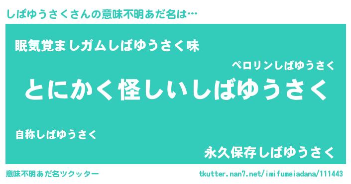 | 欧米人風あだ名 | 『ウサインしばゆうさく』 |