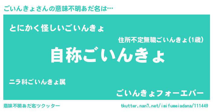 | 男性向けラノベタイトル風あだ名 | 『ごいんきょに滅ぼされるだけの簡単なお仕事です』 |