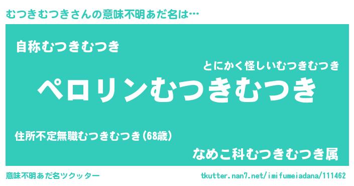 | 胡散臭い通販商品みたいなあだ名 | 『億万長者になれるブレスレット…その名も「むつきむつき」』 |