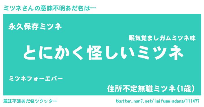 | ポケモン風あだ名 | 『ヒミツネ』『ゼニミツ』『ミツゴンZ』 |