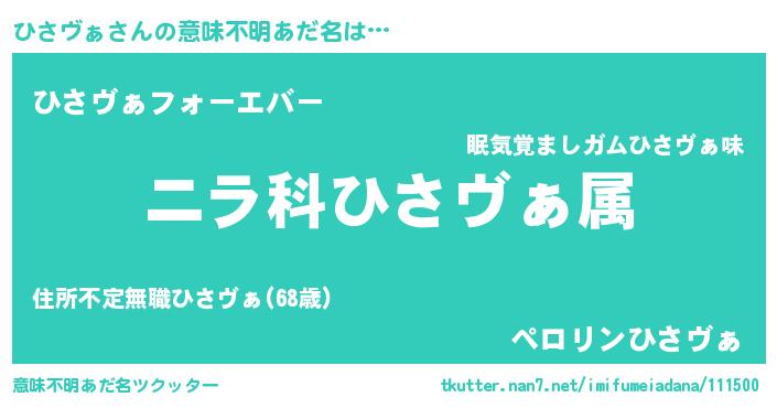 | ピコ太郎風あだ名 | 『ピヒ二郎』『ヒコ一郎』『ヒヒ太郎』 |