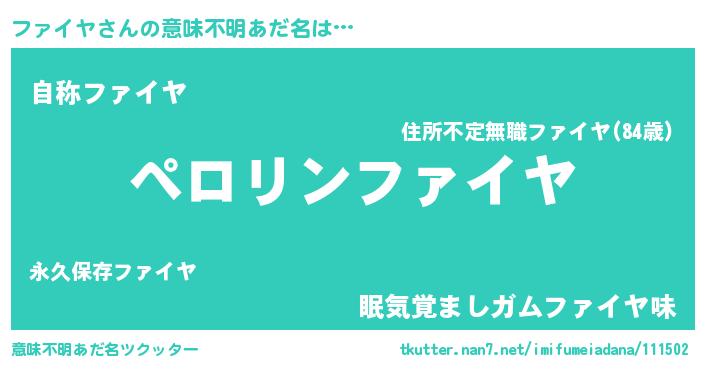| ヘコむあだ名 | 『ファもー』『ファイヤ(小並感)』 |