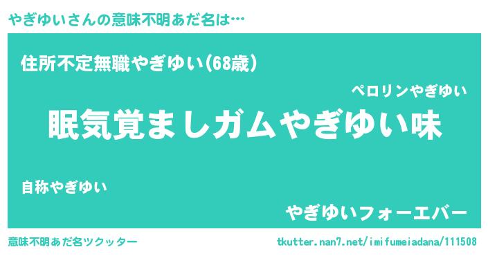 | 欧米人風あだ名 | 『やぎゆい・ステッグマイヤー』 |