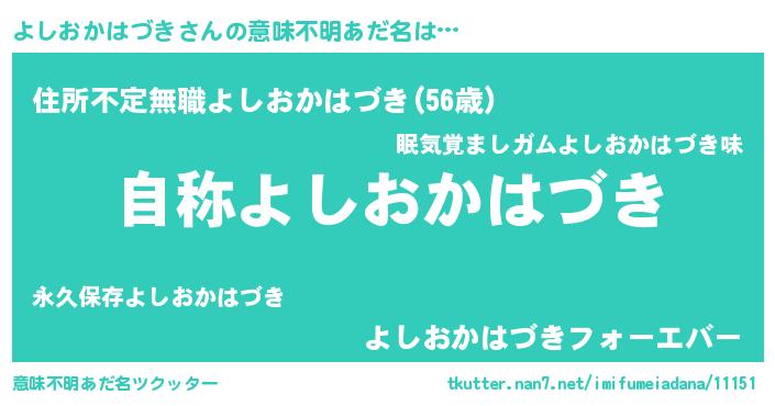 | 男性向けラノベタイトル風あだ名 | 『よしおかはづきに滅ぼされるだけの簡単なお仕事です』 |