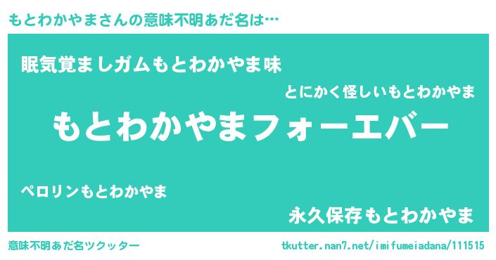 | ファンタジー風あだ名 | 『エターナルモトワカヤマー』 |