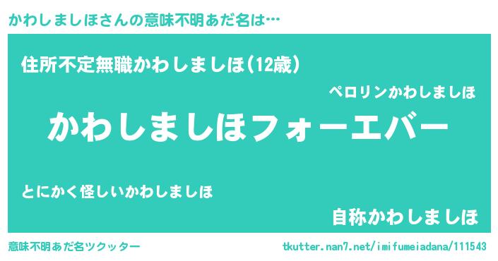 | ファンタジー風あだ名 | 『エターナルカワシマシホー』 |