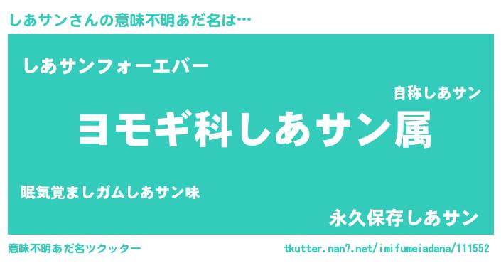 | ヒーロー風カッコイイあだ名 | 『ウルトラしあサンマン』『ネオシアサン』 |