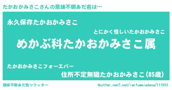 | 欧米人風あだ名 | 『トリンドルたかおかみさこ』 |