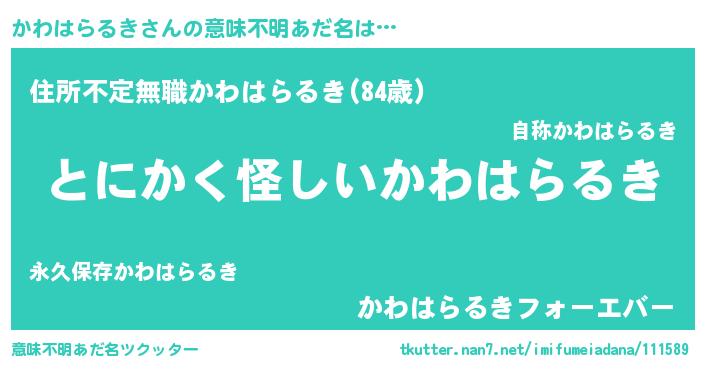 | 胡散臭い通販商品みたいなあだ名 | 『信頼と実績のペンダント…その名も「かわはらるき」』 |