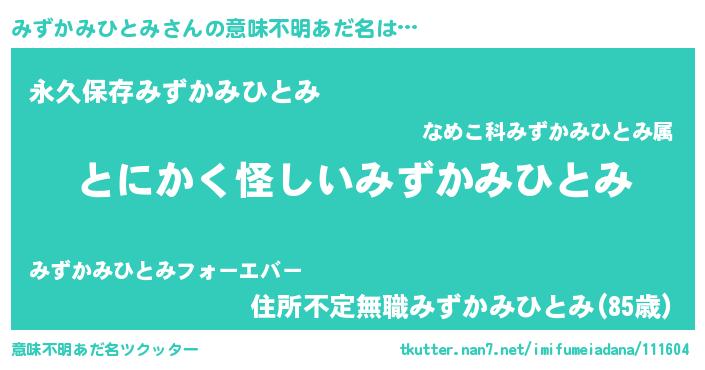男性向けラノベタイトル風あだ名 | 『ダンジョンにみずかみひとみを求めるのは間違っているだろうか』 |