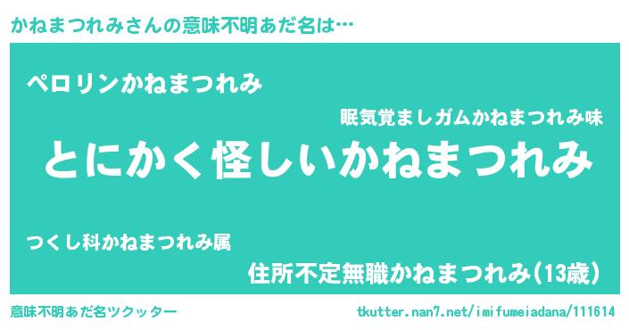 | 胡散臭い通販商品みたいなあだ名 | 『全米が絶賛したサプリメント…その名も「かねまつれみ」』 |