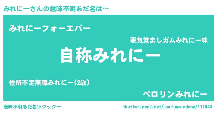 | ヘコむあだ名 | 『つくし』『みれにゅー』『みれを』 |
