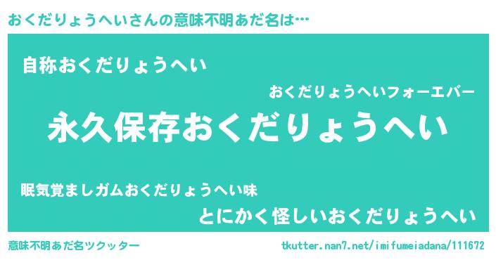 | 男性向けラノベタイトル風あだ名 | 『おくだりょうへいという概念が存在しない退屈な世界 』 |