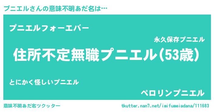 | ヘコむあだ名 | 『豆乳』『プニもー』『プニエル(笑)』 |