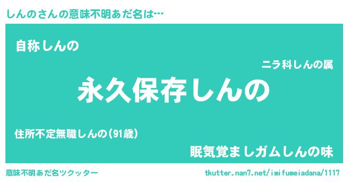 | ヘコむあだ名 | 『しんの(遠い目)』『しんもー』 |