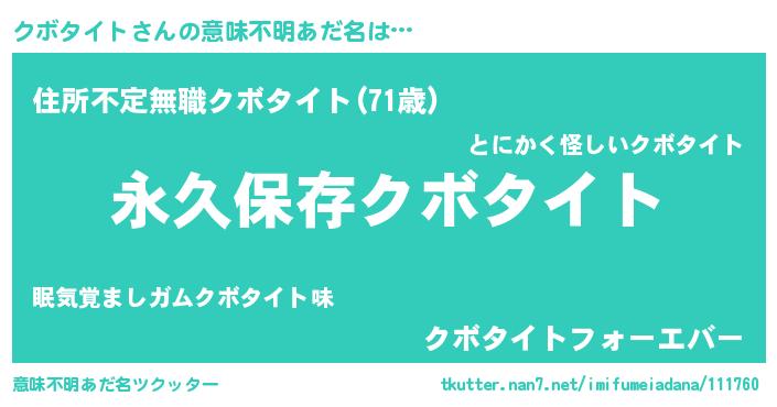 | 胡散臭い通販商品みたいなあだ名 | 『来世でも幸せになれる水素水…その名も「クボタイト」』 |
