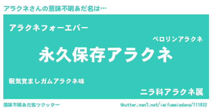 | 胡散臭い通販商品みたいなあだ名 | 『前代未聞の健康食品…その名も「アラクネ」』 |