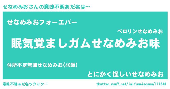 | 欧米人風あだ名 | 『ダニエルせなめみお』 |