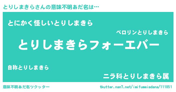 | 男性向けラノベタイトル風あだ名 | 『とりしまきらに滅ぼされるだけの簡単なお仕事です』 |