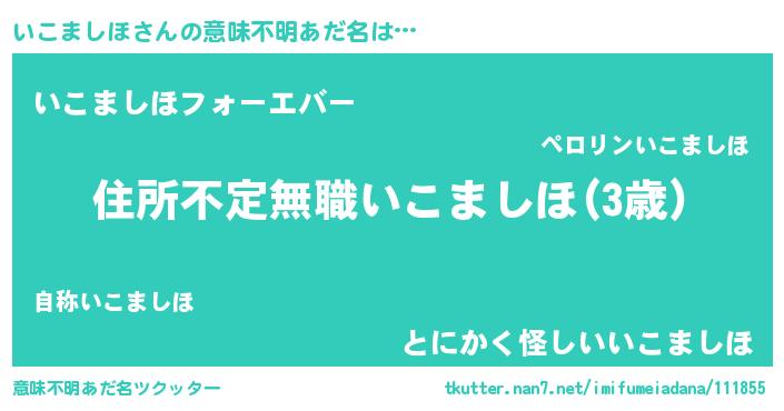 | 欧米人風あだ名 | 『アンジェラ・いこましほ』 |