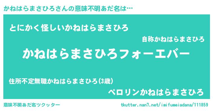 | 欧米人風あだ名 | 『かねはらまさひろクリステル』 |