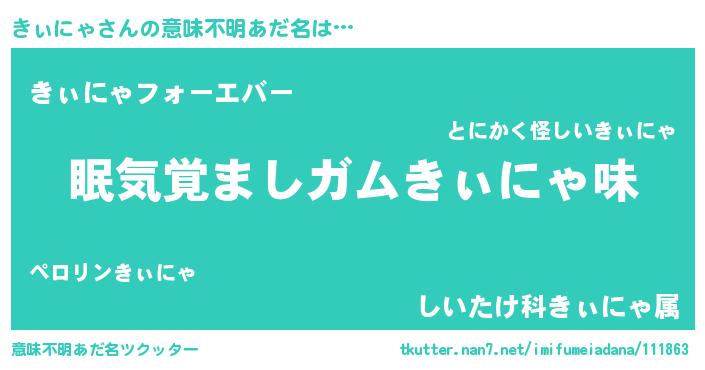 | 胡散臭い通販商品みたいなあだ名 | 『モンドセレクションを受賞した隕石のかけら…その名も「きぃにゃ」』 |