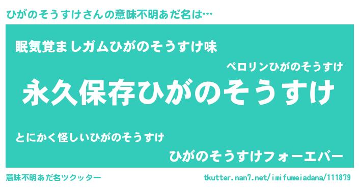 | 胡散臭い通販商品みたいなあだ名 | 『来世でも幸せになれる健康食品…その名も「ひがのそうすけ」』 |