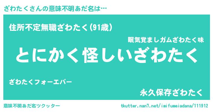 | ポケモン風あだ名 | 『ヒザワタク』『ザワゴンZ』 |