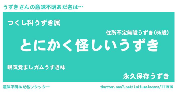 | ピコ太郎風あだ名 | 『ウズ三郎』『ピコウ郎』『ウウ太郎』 |