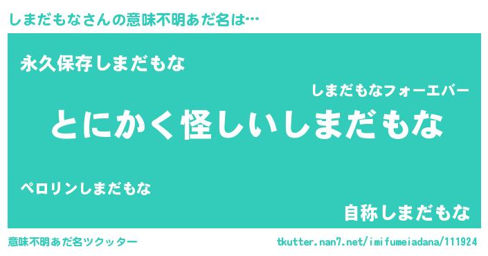 | 男性向けラノベタイトル風あだ名 | 『しまだもなの嫁は女の子じゃないと思った?』 |