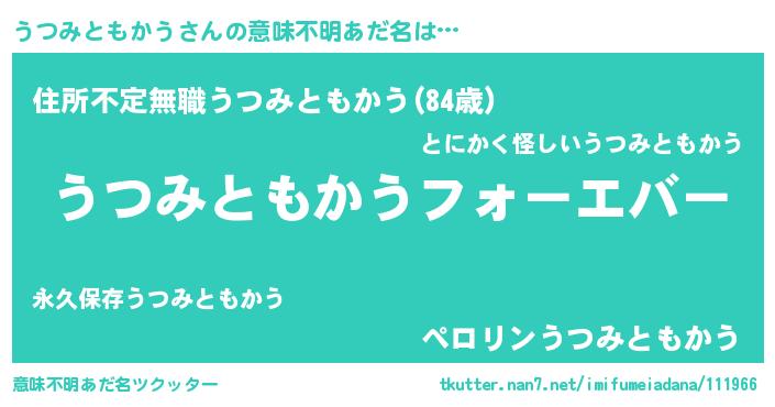 | ファンタジー風あだ名 | 『エターナルウツミトモカウー』 |