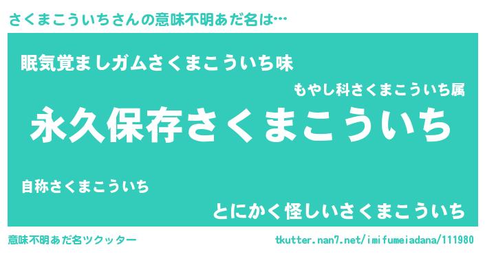 | 可愛いあだ名 | 『さくまこういちママ』『さくちゅっちゅ』 |