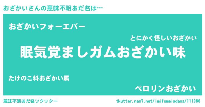 | ヘコむあだ名 | 『豆乳』『おざもー』『おざ太郎』 |