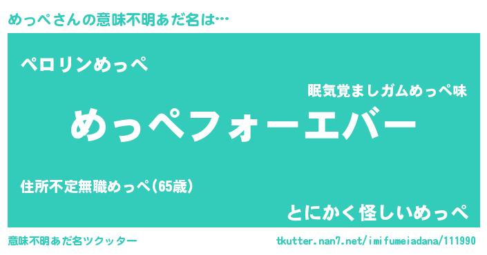 | ヒーロー風カッコイイあだ名 | 『ウルトラめっぺマン』『スーパーメッペ』 |