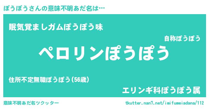 | 2回繰り返すあだ名 | 『だるんだるん』『ぽうぽう』 |