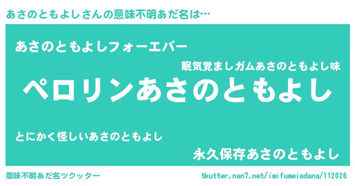 | 男性向けラノベタイトル風あだ名 | 『あさのともよしの憂鬱』 |