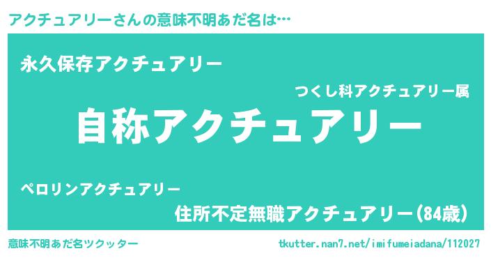 | ヘコむあだ名 | 『アクチュアリー(小並感)』『アクっふぃ~』 |
